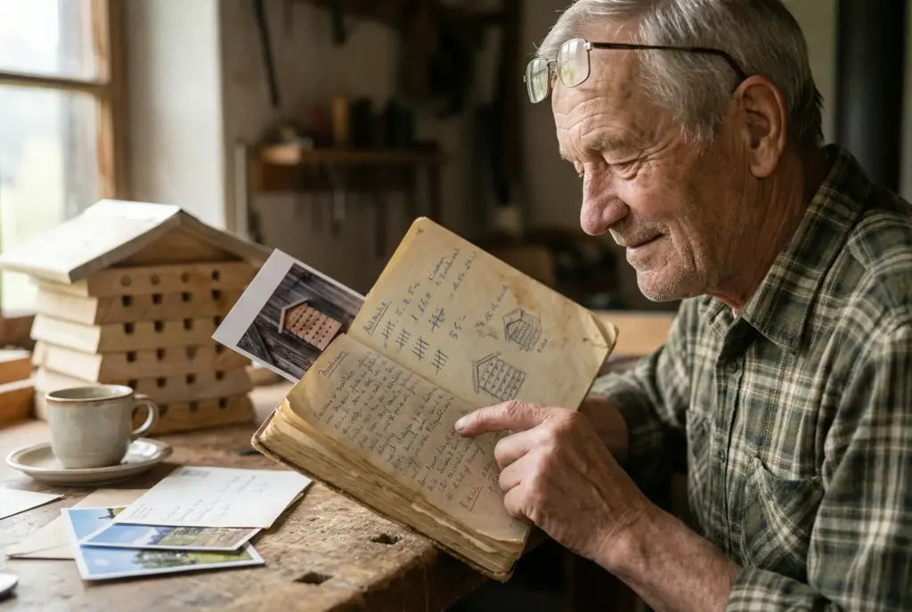 Er blättert weiter. „Hier: Familie Krause aus Annaberg. Die haben 2010 zwei Stück bei mir bestellt. Letztes Jahr schickten sie mir ein Foto – fast jedes einzelne Loch war mit Lehm versiegelt. Das ist für mich der schönste Lohn: Zu sehen, dass die Natur meine Arbeit annimmt.“