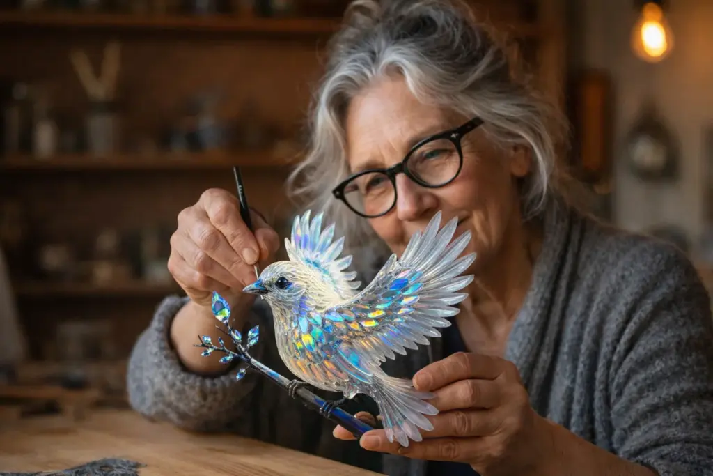 Her customer Donna M. (48) from Nashville confirms this: “Two weeks ago, I gave my mother a Celestial Gleam for her living room window. She had tears in her eyes – not because of the pendant itself, but because she could feel how much love and work had gone into it. Now she drinks her coffee in that very spot every morning and enjoys the play of light every day. You can’t put a price on that.”