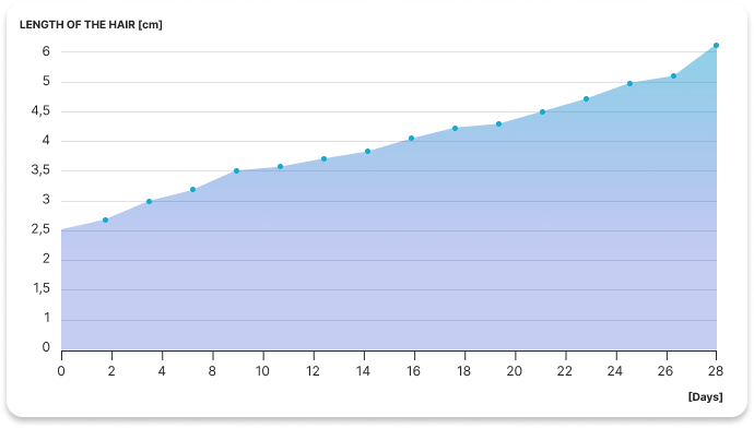 Veränderung der Haarlänge während der Behandlung mit dem Keratin-Bioaktivator Ergebnis nach 28 Tagen: durchschnittlich 6 cm längeres Haar
