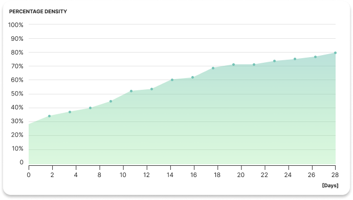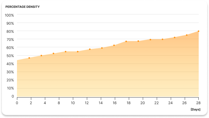 Veränderung der Haardichte während der Behandlung mit dem Keratin-Bioaktivator Ergebnis nach 28 Tagen: durchschnittlich 80% dichteres Haar