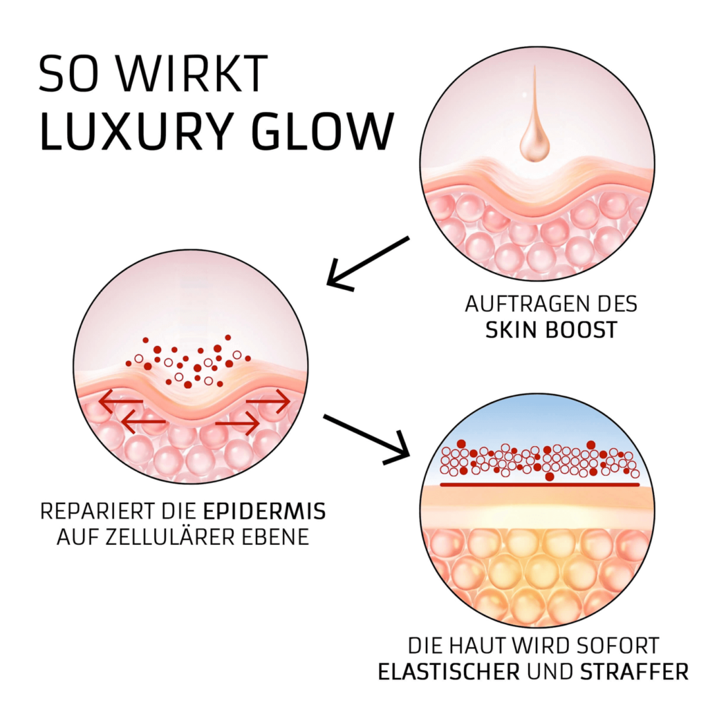 Im Gegensatz zu den meisten Cremes und Seren, die nur oberflächlich wirken, dringt das LuxuryGlow Serum tief in die Haut ein und entfaltet seine Wirkung dort, wo es wirklich zählt. Mit einem innovativen Anti-Aging-Wirkungskomplex schützt, repariert und revitalisiert das Serum Ihre Haut nicht nur von außen, sondern auch von innen heraus.