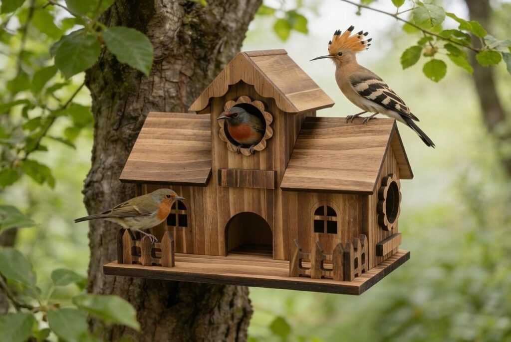 – Gift im Garten (Behandeltes Holz): „Lackierte oder lasierte Häuser sehen im Regal schick aus. Aber Vögel haben extrem feine Sinne. Die chemischen Ausdünstungen sind für sie wie Giftgas. Viele Vögel meiden diese Häuser instinktiv – und wenn sie doch brüten, wird die Brut oft krank.“