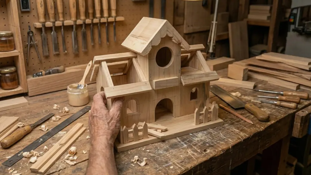 Dieses Rätsel ließ ihn nicht los. Er begann zu protokollieren. Er veränderte Maße um Millimeter, wechselte Holzarten, variierte die Dachneigung. Er sprach mit Ornithologen und wälzte Fachliteratur. Das Ergebnis dieser lebenslangen Forschung ist das „Waldhüter“-Vogelhaus. Benannt nach dem kleinen Thüringer Waldstück hinter seiner Werkstatt, ist es die Essenz aus 43 Jahren Erfahrung. Es ist ein Haus, das auf echtem Wissen basiert – nicht auf Vermutungen.